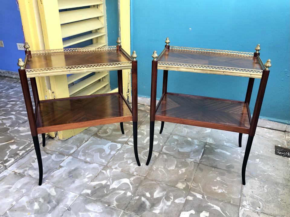 Pareja de Mesas con plumilla y bronce, acabadas de restaurar.