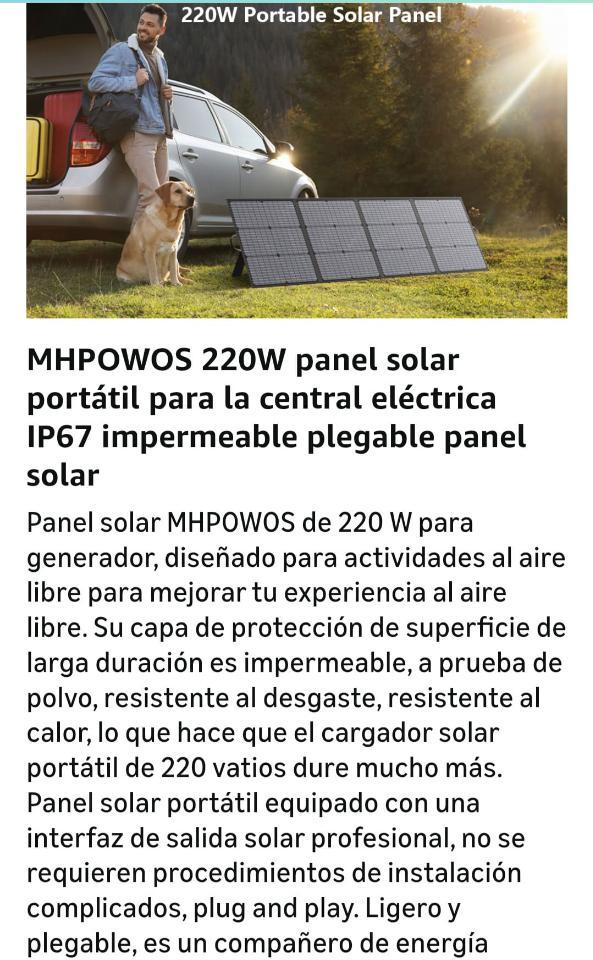 Panel solar 220watts portátil e impermeable.