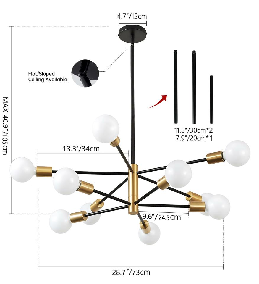 LÁMPARA DE TECHO DE ALTURA AJUSTABLE TIPO SPUTNIK D 10 LUCES - $70