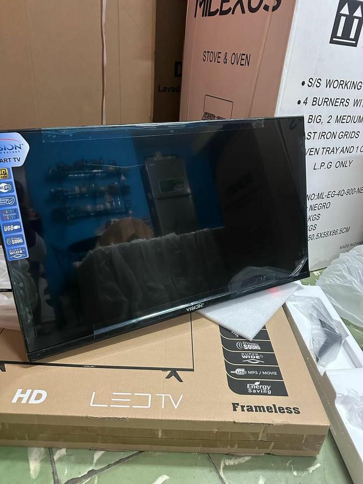 Smart TV Visión de 32 con soporte a la pared y cajita inter - $190